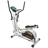 The elliptical mode blends stair climbing, cycling, skiing, and walking in a single movement. In forward motion, quadriceps, buttocks, lower abdomen, hips, and thighs are targeted. In reverse motion, hamstrings, lower buttocks, hips, thighs, and calves are targeted. The stepper mode works the same muscle groups with a vertical motion. Switching between modes is quick and easy. In either mode, dual-action handlebars--foam-padded for comfort--add an upper-body workout to tone and firm arms, chest, shoulders, and back. (The stationary hand grip offers an alternative to the handlebars.) A water bottle and bottle holder are positioned on the machine's upright section. The cross-trainer's frame is steel and aluminum. Floor protectors safeguard a workout area and prevent skidding. Assembled (instructions included), the machine measures 46 inches long x 30-3/4 inches wide and weighs 153 pounds.
